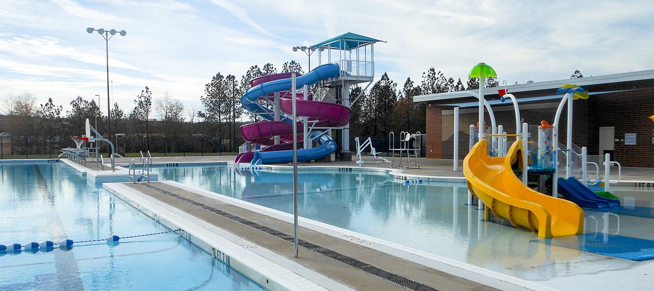 - Outdoor: 8-lane, 50-meter competition pool cross course, Leisure pool, Body slide, Cascades, 5 geysers, Zero depth entry, Play structure