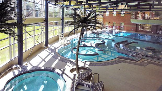 - 10-lane 25-meter x 25-yard stretch pool, Movable Bulkhead, Two 1-Meter Diving Boards, One 3-Meter Diving Board, Diving Well