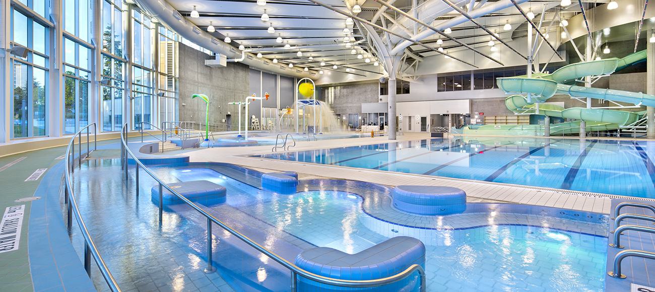 The 95,000-square-foot Edmonds Community Centre and Fred Randall Pool is designed to meet the needs of the diverse community of Burnaby. WTI teamed up with lead architect CEI Architecture to complete the aquatics design and engineering of the facility. The Fred Randall Pool features a six-lane, 25-meter pool, a 15-meter warm-water leisure pool, warm swim and therapy lanes, a lazy river, beach entry and water toys that compliment the adjacent double waterslide.
