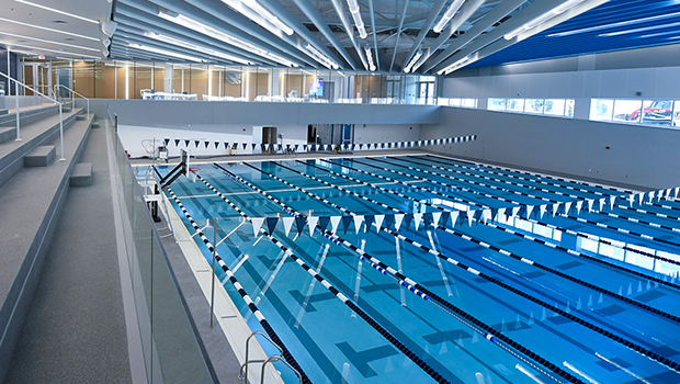WTI, together with the lead architect and recreation advisory committee, designed a facility that best fit the recreational needs of the UH community. One of the main components of the CRWC is the 70-meter-by-25-yard indoor competition pool with movable bulkheads, five platform diving boards at 1-, 3-, 5-, 7.5- and 10-meter heights, a 1-meter spring board and a 3-meter spring board.