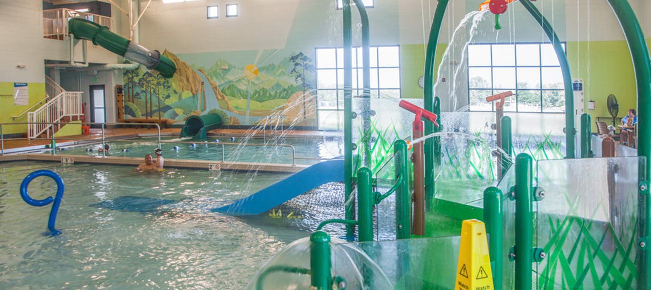 The existing pirate ship was replaced with a larger, nature-themed play structure with tot slide and interactive leaf-shaped spray features. The new aquatic play unit can accommodate more children and offers more updated and upgraded opportunities for learning and exploration. Across from the play structure, the waterslide has been upgraded with clear flumes to bring in more natural light during the ride. Next to the waterslide is a hand-painted geometric style Colorado themed mural painted by local artist Yulia Avgustinovich. Finally, to improve the overall guest experience, the air and water quality have been improved through two new filtration systems.