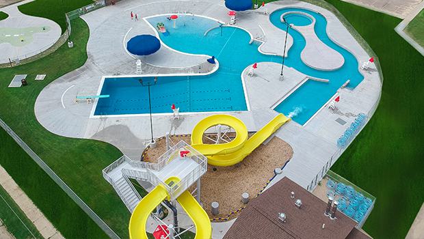 - 2,764 SF Leisure Pool: Play Structure and Interactive Features and Slide