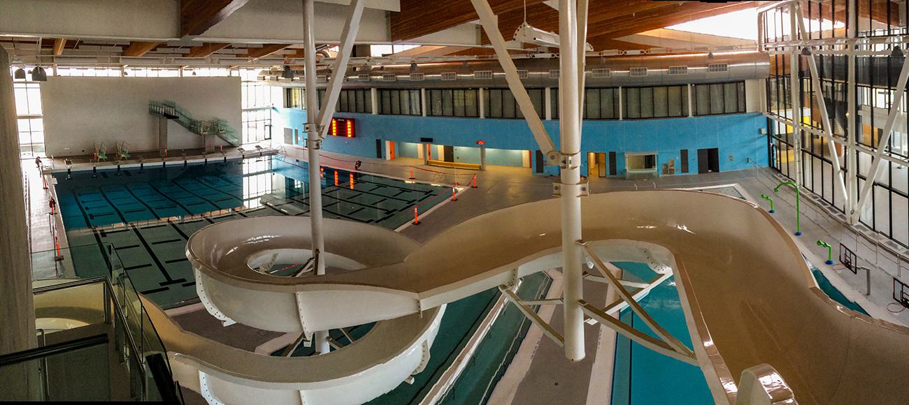 WTI was hired by the architect to provide design and engineering services for the new aquatic centre. Completely surrounded by glass windows, the aquatics area is comprised of a 10-lane, 25-meter competition pool and dive tower, a warm water leisure pool, a family whirlpool and a run-out slide. The area is designed to accommodate the competitive, recreational and therapeutic needs of the community. The competition pool also includes a movable floor and bulkhead that allows for program flexibility. Ample deck space, including bleacher seats, is provided throughout the area, allowing for the staging of swimmers, swimming lessons, public swimming and spectator use.