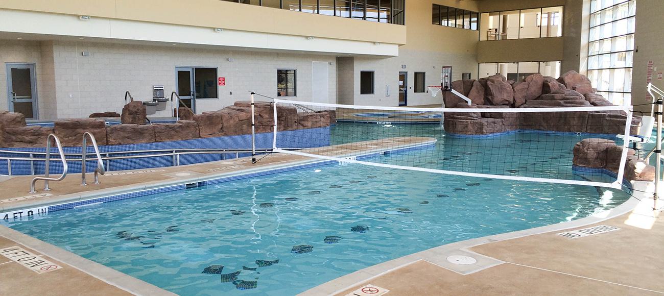 - Amenities: 3,626-square-foot leisure pool, Rockwork with waterfall, Underwater bench seating, 2 25-yard lap lanes, Current channel