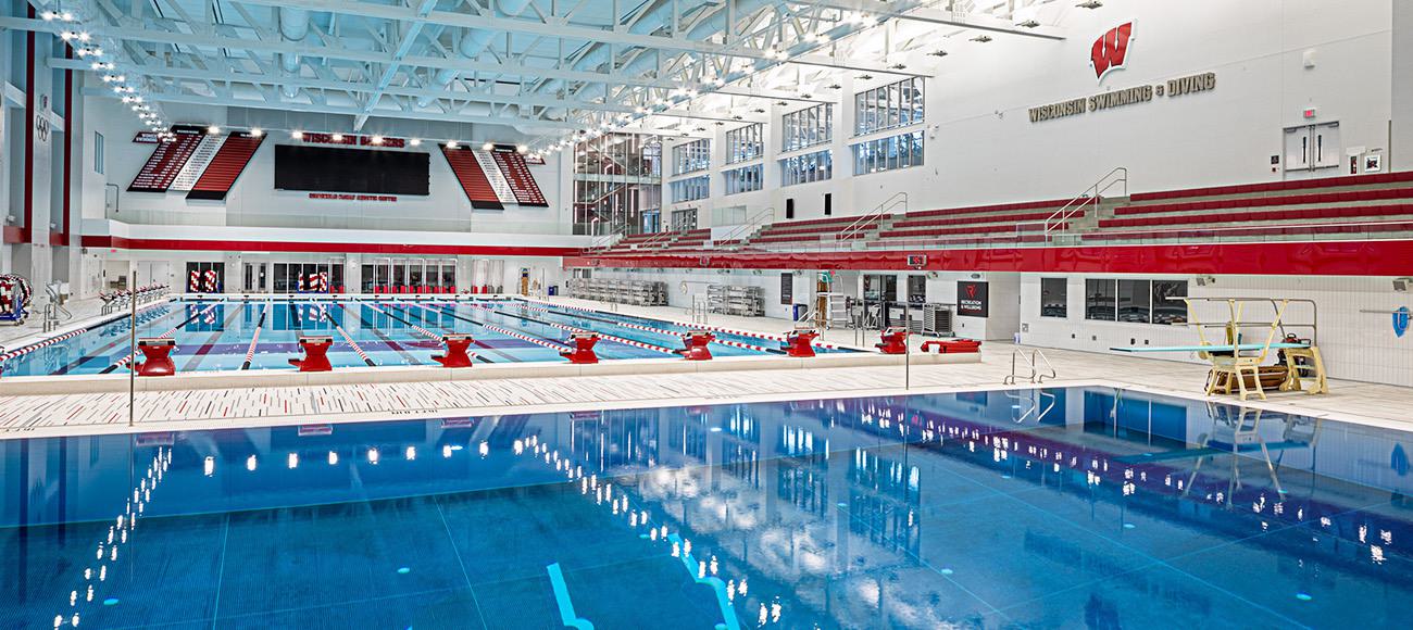 Since its construction in 1983, the Southeast Recreation Facility (SERF) has served the University of Wisconsin Madison’s students and faculty and is one of the most visited campus building. Three decades later, the university had outgrown the SERF and began planning a new facility. Water Technology, Inc. (WTI) completed an aquatic evaluation in 2014 that was used as the basis of recommendation for the proposed replacement that was solicited in 2016. A generous $20 Million donation from renowned philanthropists Nancy and Ab Nicholas completed the fundraising initiative, and the recreation facility is now named The Nicholas Recreation Facility (“The Nick”) in their honor. UW Madison hired WTI to provide aquatic design and engineering services alongside a local and national architecture team for the Soderholm Family Aquatics Center, which is housed within The Nick and home to the UW Madison Swimming and Diving Teams. When finished, the $96 Million, 170,000 SF Nicholas Recreation Facility will be almost 50% larger than the Southeast Recreation Facility.