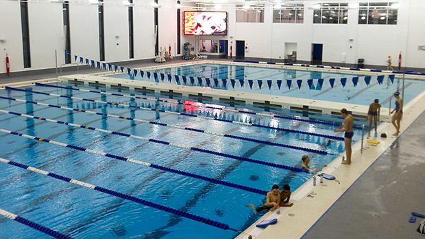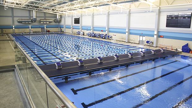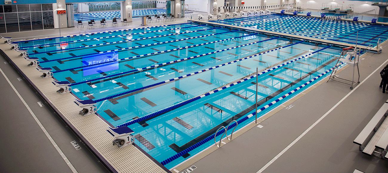 The results are getting rave reviews throughout the district and beyond. The new Myrtha pools feature a 50-Meter stretch competition pool, holding 1.2 million gallons of water, with two moveable bulkheads that can accommodate up to 5 swim teams at a time with spectator seating for up to 850. It also houses a complementary 4-lane, 25-Yard practice pool for warm-up, cool-down, and therapy swimming. This facility is ideal for training, competition, health, and rehabilitation requirements. It provides an opportunity to advance the district’s swimming and diving programs and creates additional community benefits including water safety courses, swim lessons, and first responder training.
