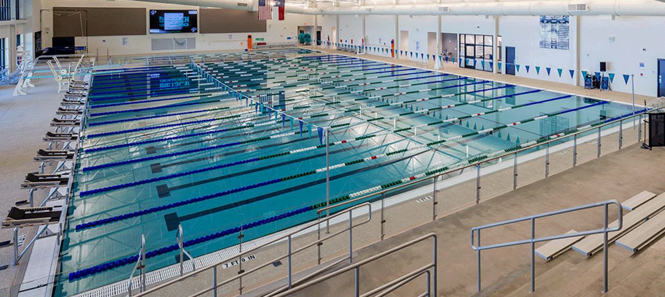 Water Technology, Inc. (WTI) alongside local architects, provided planning, design, and engineering services for the Natatorium. In January 2018, Prosper ISD began construction of the Natatorium along with a multi-use football stadium with shared parking. The facilities opened in the fall of 2019 and have proven to be incredibly popular, even during a pandemic. The aquatics portion of the new Prosper ISD Natatorium consists of two pools and two separate mechanical and chemical systems. The 9,000 SF competition and training pool includes 16-lanes, in the 25-yard swimming pool, with 1-meter diving boards. The multi-purpose warm-up and instructional pool is a 4-lane, 2,250 SF pool with an ADA access ramp. The facility can accommodate seating for up to 250 spectators.