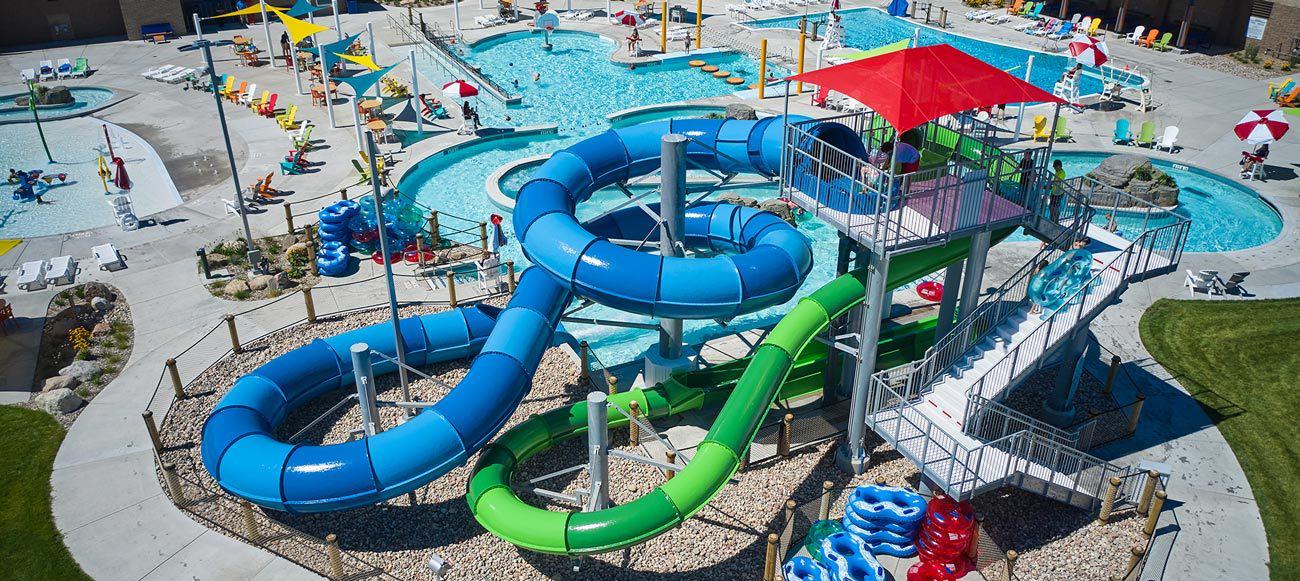 - Leisure Pool 7667 SF, Activity Pool 2333 SF, Diving Board 1M, Climbing Wall, Wibit Course, Water Basketball, Body Slide, Plunge Area for Lazy River, Action Channel (75 FT), Lazy River (260 FT), Tot Pool Zero-Depth Entry (2553 SF), Tot Slide, Play Features, Geysers